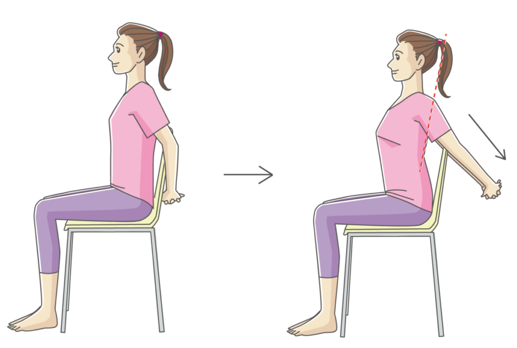 また、椅子に座ったまま両手を後ろで組み、胸を開いて肩甲骨を寄せる動きも効果的です。