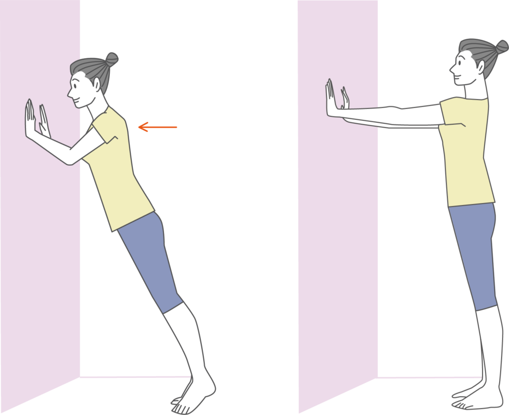 例えば、壁に手をついて腕立て伏せのような動きをする「壁腕立て」は、肩甲骨周辺の筋肉を無理なく鍛えることができます。1日10回を2セット程度から始めて、慣れてきたら徐々に回数を増やしていくとよいでしょう。
