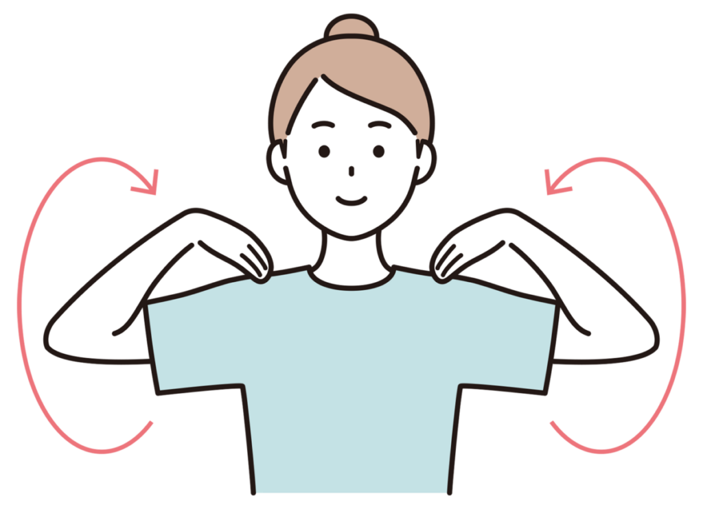 おすすめは、肩甲骨を動かす体操です。両腕を横に広げて大きく円を描く、肩を前後にゆっくり回す、背中で手を組んで胸を開く。こうした動きを10回ずつ、ゆっくり行います。肩甲骨まわりの筋肉が動くことで、血流が良くなり、筋力も維持されます。