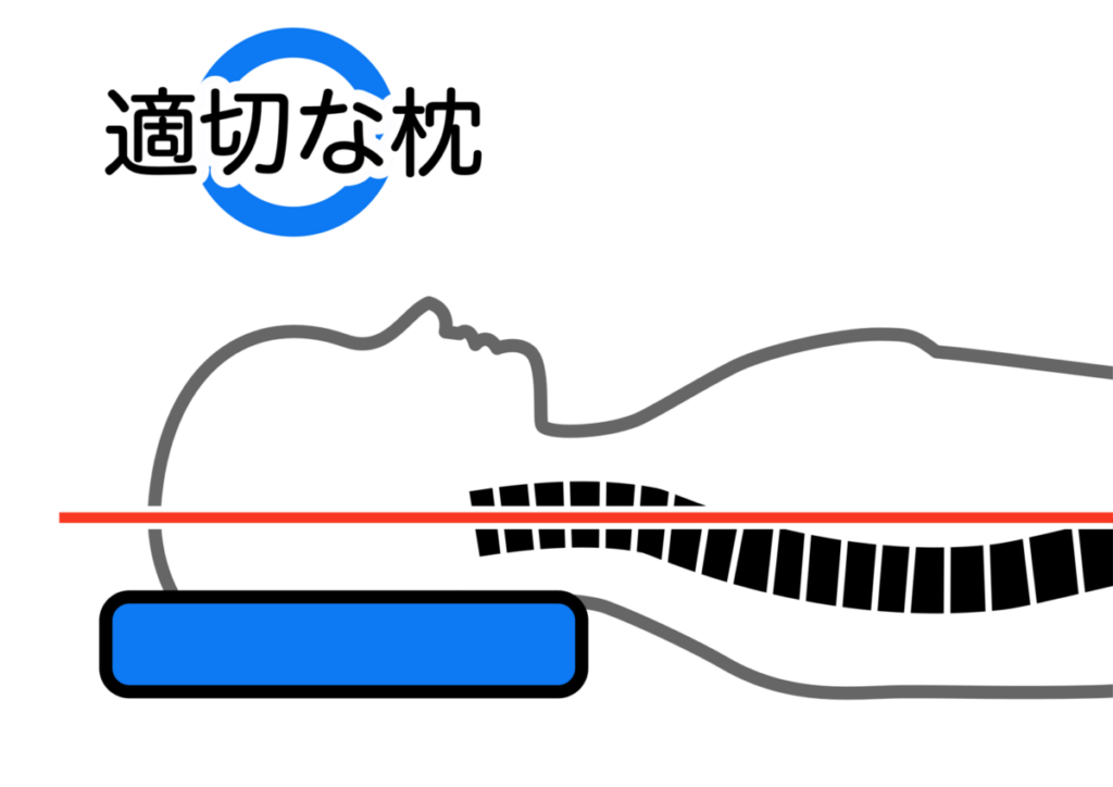 まず枕ですが、高すぎても低すぎても首に負担がかかります。仰向けに寝た時に、首の骨が自然なカーブを保てる高さが理想です。