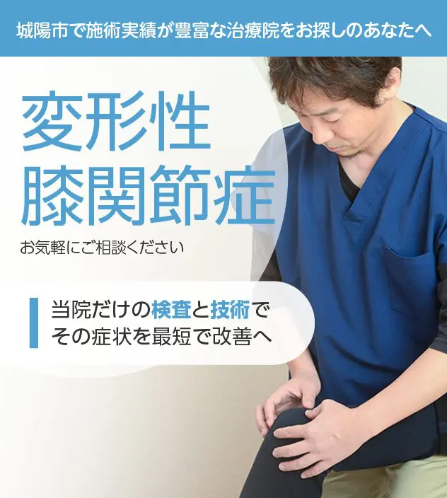 病院やほかの治療院で改善しなかったとしても諦める必要はありません。変形性膝関節症は豊富な施術実績を誇る当院にお任せください。