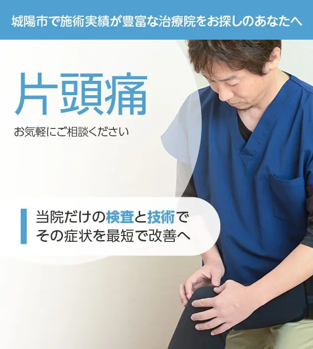 病院やほかの治療院で改善しなかったとしても諦める必要はありません。片頭痛は豊富な施術実績を誇る当院にお任せください。